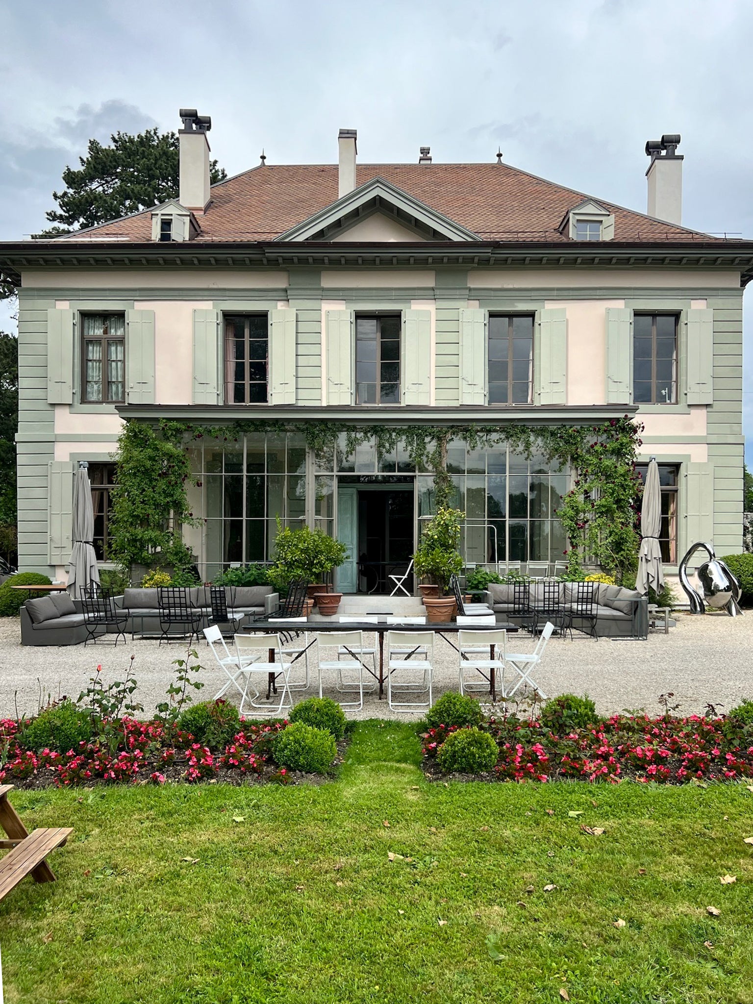 Our chosen venue, the historic Maison Le Fort, was the perfect setting for our SS24 collection. Just 3 km from Geneva's center, this beautifully renovated villa, surrounded by fields, blends old-world charm with modern luxury. Its individual design and lush garden, complete with a swimming pool and patio, offered a serene and picturesque backdrop.